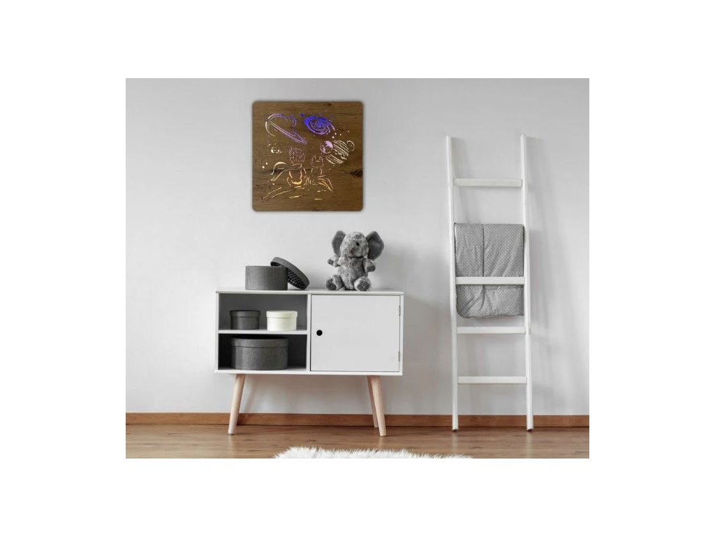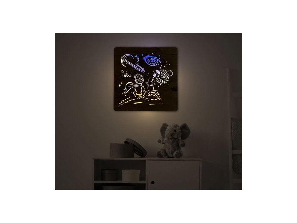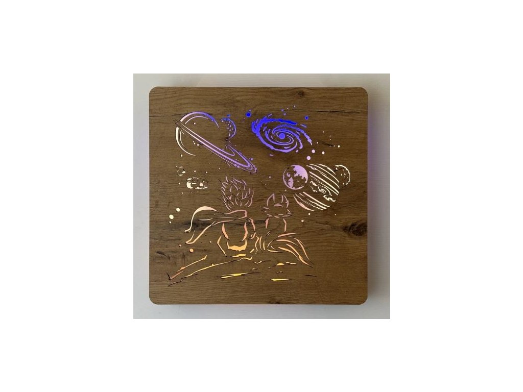 Drevený LED obraz Malý princ a planéta v rozmere je nežným umeleckým vyjadrením putovania a objavovania, ktoré sa odohráva na malých hviezdach a v nekonečnom vesmíre. Tento svietiaci obraz princa a jeho planéty prináša do tvojho domova magickú atmosféru detskej zvedavosti a snov, ktoré sa v noci rozžiaria ako hviezdy na oblohe. Podsvietený drevený obraz vesmíru a Malého princa vytvára harmonický celok, ktorý pozýva k zamysleniu nad krásou malých svetov a veľkých príbehov.