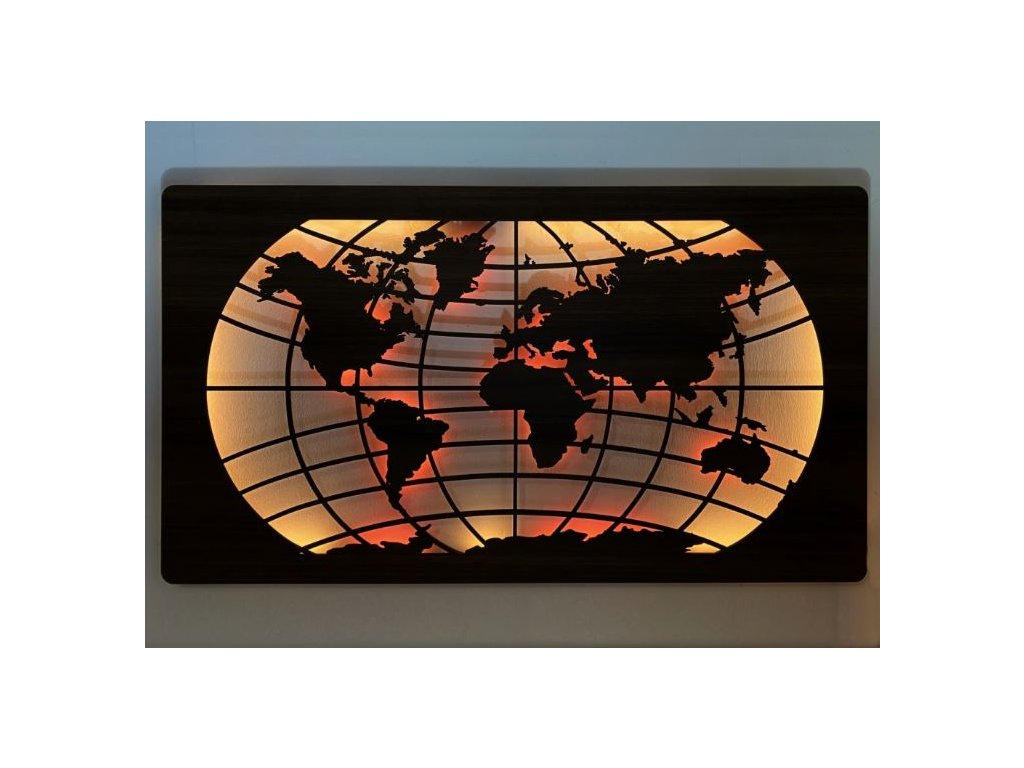 Elegantný svietiaci obraz mapy sveta v rozmere 125x73 cm s RGBW LED podsvietením prinesie do tvojho priestoru moderný nádych a príjemnú atmosféru. LED obraz mapy sveta ponúka viac farebných možností osvetlenia a nádherné detaily, ktoré oživia každú stenu. Tento podsvietený obraz mapy sveta je ideálny do pracovne, kancelárie alebo obývačky a stane sa dominantným vizuálnym prvkom vášho interiéru.