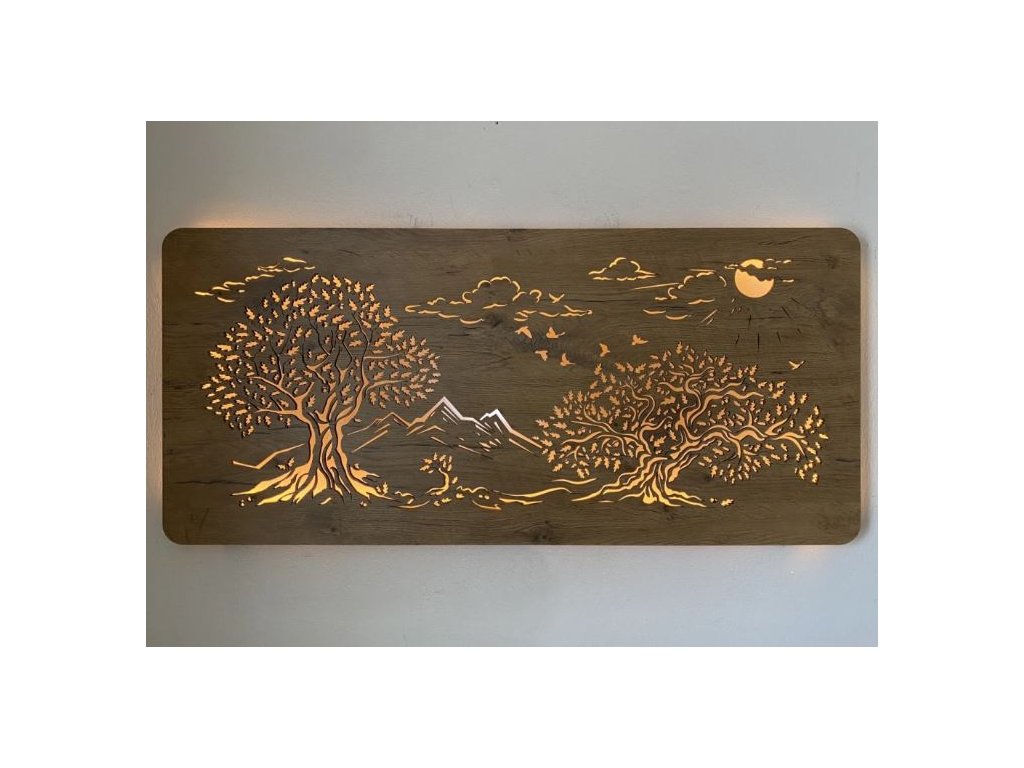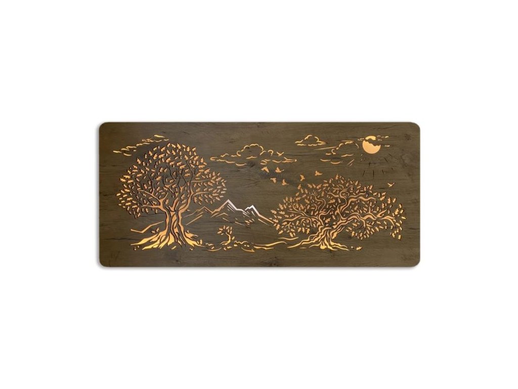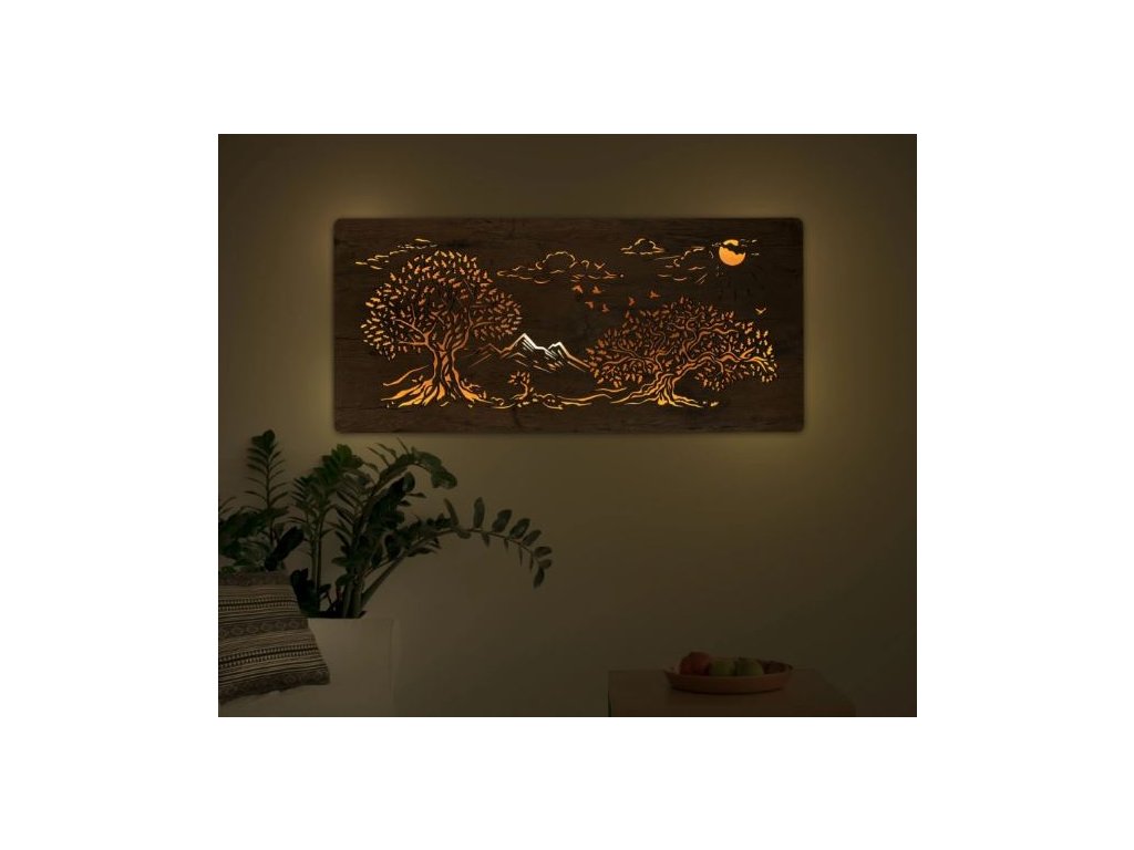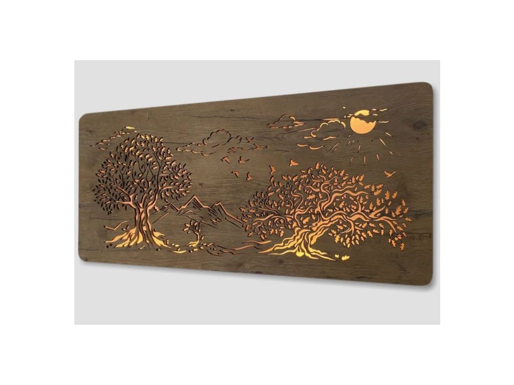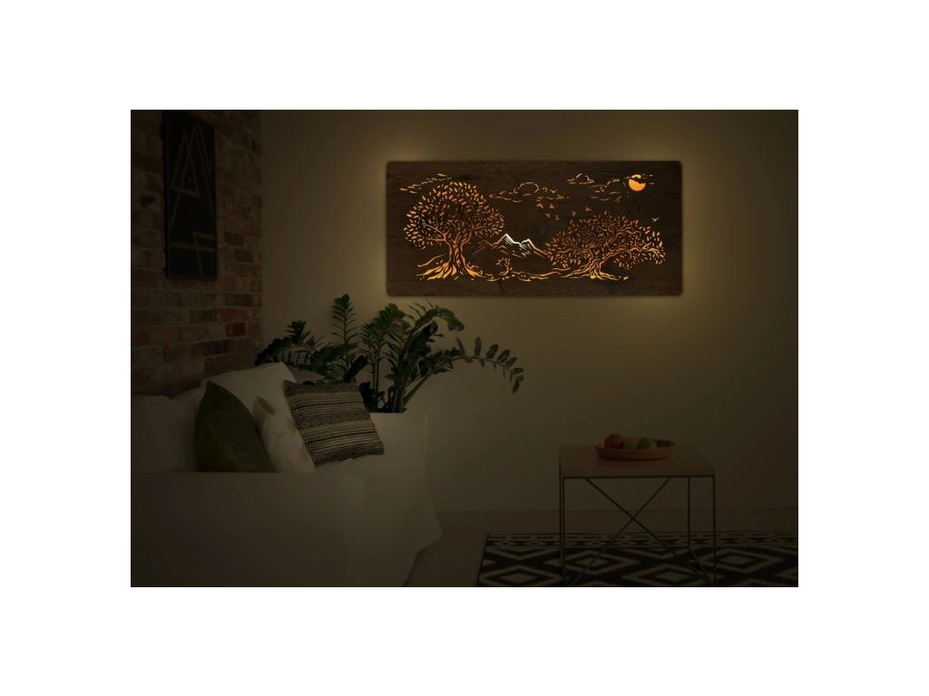 Aj v kompaktnom formáte tento obraz zachytáva krásu prírody, ktorá ti poskytne pocit pokoja a stability. Tri duby pod nočnou oblohou vytvárajú harmóniu, ktorú osvetľuje jemné LED svetlo. Tento LED obraz na stenu je skvelou voľbou do menších priestorov, ako sú chodby, kúpeľne alebo úzke steny. Svietiaci obraz príroda dodá priestoru príjemné teplé svetlo a zároveň vytvorí atmosféru, ktorá upokojuje a zjemňuje celkový dojem interiéru. Je to ideálny doplnok pre milovníkov prírody, ktorí hľadajú krásny a funkčný obraz s podsvietením.