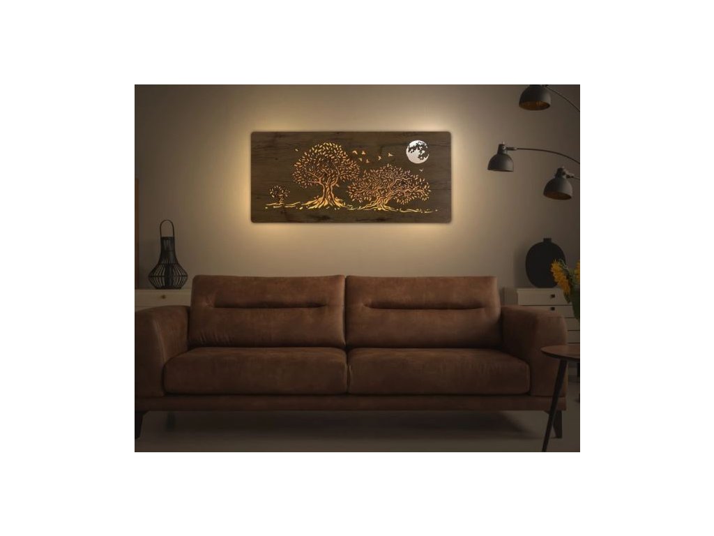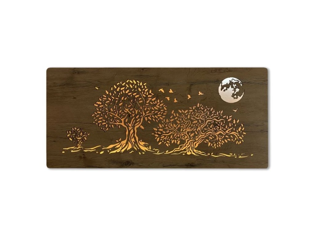 Tento obraz s troma dubmi pod osvetleným mesiacom prináša do domácnosti pokoj a mystickú atmosféru. LED obraz na stenu zobrazuje silné a stálice prírody – duby, ktoré sa v noci ponárajú do svetla mesiaca. Ich podsvietenie zvyšuje výraznosť obrazu, ktorý si získa každého milovníka prírody. Tento svietiaci obraz príroda je ideálnym doplnkom do interiéru, ktorý chce dodať do priestoru atmosféru ticha a pokoja. Vďaka jeho dizajnu sa skvele hodí do obývačky, spálne alebo na chalupu, kde sa stane krásnym akcentom, ktorý nielenže zútulní, ale aj esteticky oživí priestor.