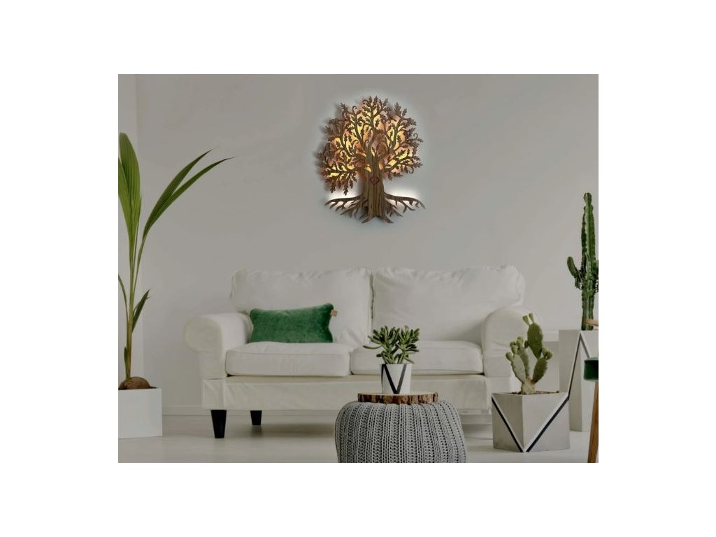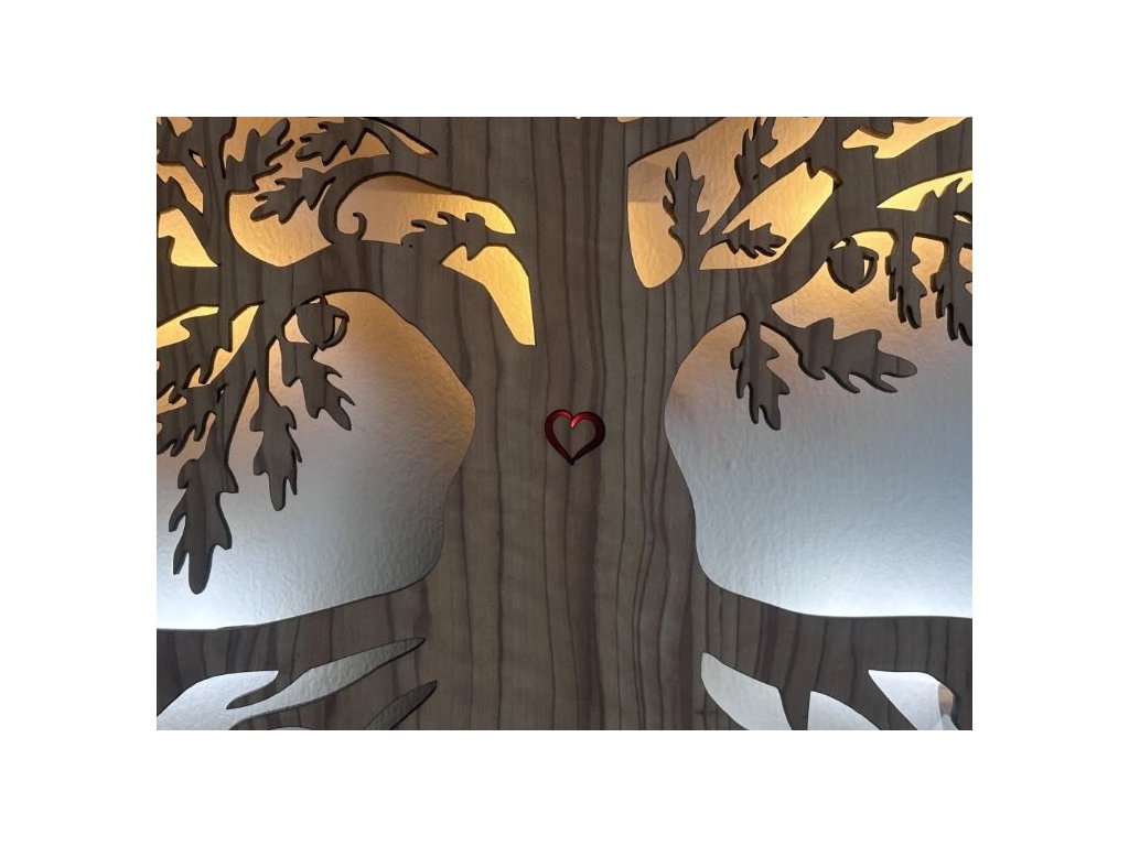 Unikátny dizajn a autentický motív. Tento svietiaci obraz strom je vyrezaný priamo do dreveného podkladu s detailným motívom stromu - od koreňa, cez kmeň až po listy, čím vytvára jedinečný svetelný efekt. Prechádzajúce svetlo vytvára príjemnú hru tieňov a dodáva miestnosti teplý, pôsobivý charakter, čo potvrdzuje aj jeho označenie ako svietiaci obraz na stenu strom.