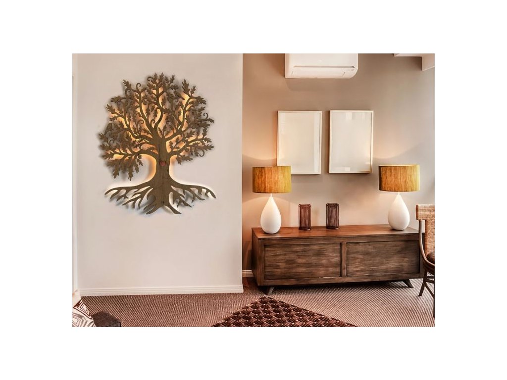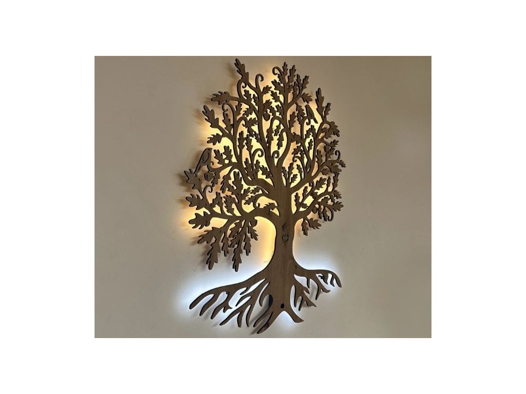 Tento veľkoformátový svietiaci obraz strom Dub 90x110 cm v sebe spája majestátnosť dubu a jemnosť svetla. Precízne vyrezaný motív stromu na drevenom podklade vytvára pôsobivý vizuálny efekt, ktorý vynikne v každom priestore. Podsvietenie LED technológiou zabezpečuje, že obraz nielen zdobí, ale aj jemne osvetľuje – ideálny ako výrazný, no harmonický prvok do interiéru. Vďaka svojmu rozmeru sa stáva skutočnou dominantou steny, ktorá vyžaruje silu, stabilitu a prirodzenú krásu.