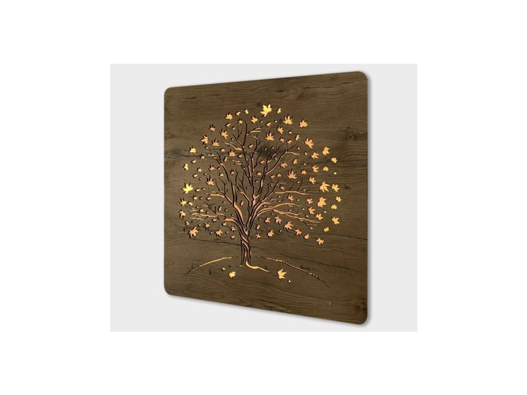 S výrazným lístím a jemnými detailmi ponúka svietiaci obraz strom Javor 62x62 cm jedinečný pohľad na krásu prírody. Tento podsvietený obraz na stenu strom je vytvorený gravírovaním do dreva a podsvietený jemným led svetlom, ktoré vytvára uvoľnenú a útulnú atmosféru. Ideálny pre milovníkov svietiacich obrazov na stenu s charakterom a dušou.