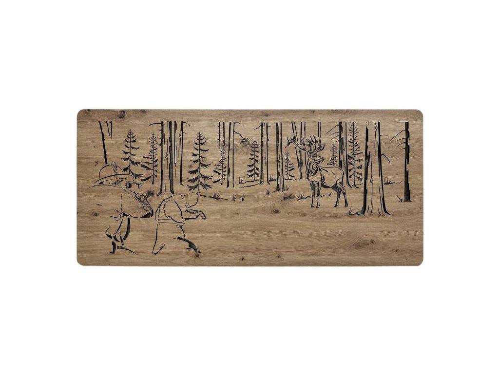 Drevený obraz Jeleň a poľovník s LED podsvietením v rozmere 110x50 cm je navrhnutý pre každého, kto má blízko k prírode, poľovníctvu a výnimočnému dizajnu. Tento poľovnícky obraz na stenu zachytáva silný motív – tichý moment medzi poľovníkom a jeleňom – a je doplnený decentným LED osvetlením pre ešte silnejší vizuálny efekt.
