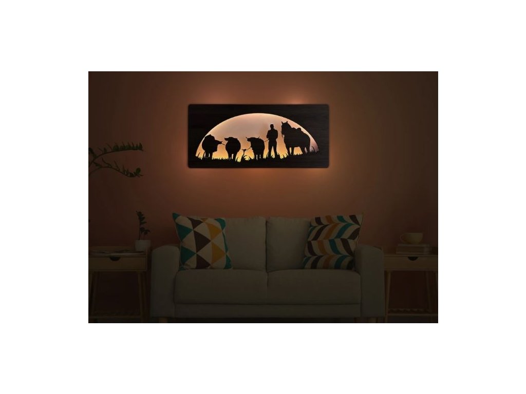 Drevený obraz s LED podsvietením Kôň a býk 100x50 cm RGBW