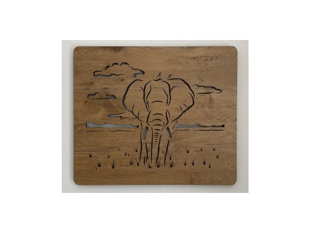 Drevený obraz Slon s LED podsvietením 65x55 cm je symbolom múdrosti, sily a pokoja. Tento LED obraz slon je vyrobený s dôrazom na detail a doplnený o jemné osvetlenie, ktoré vytvára uvoľňujúcu atmosféru.
