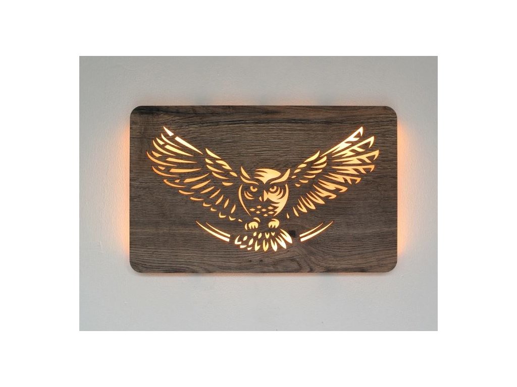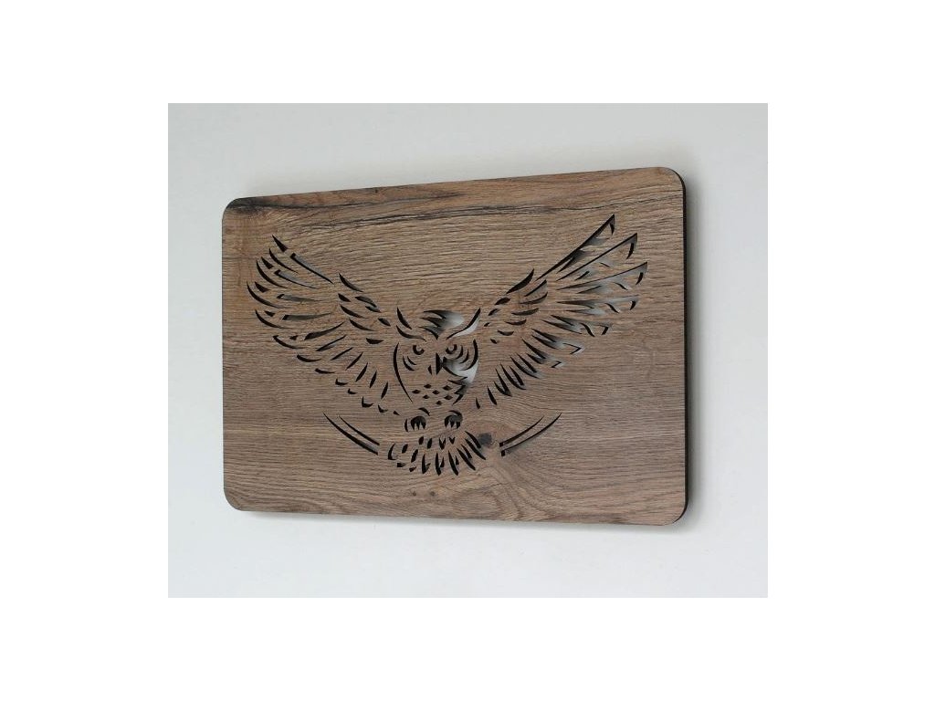 Drevený obraz s LED podsvietením Sova 62x38 cm