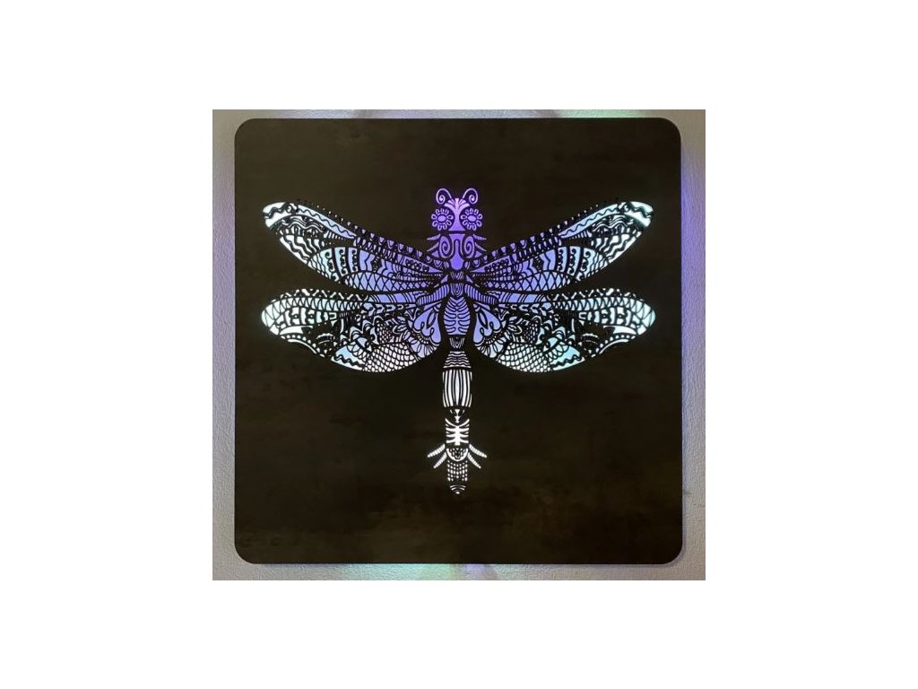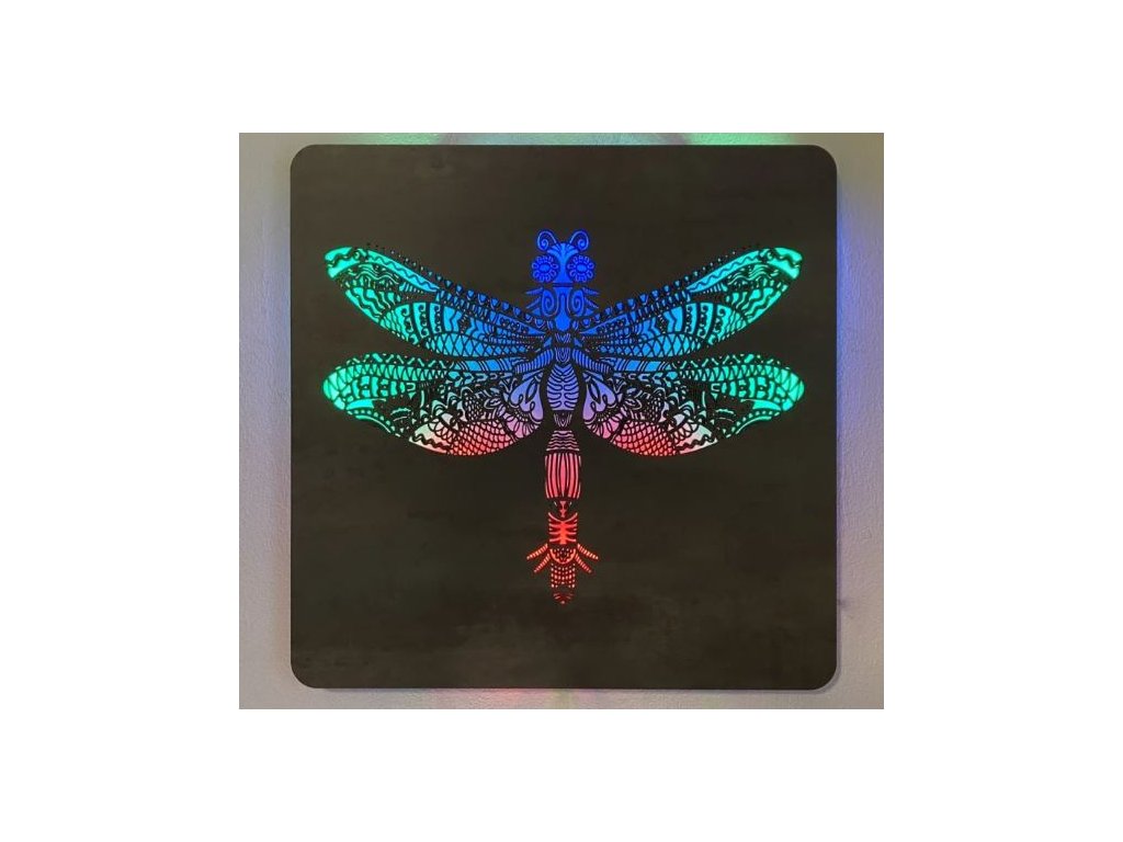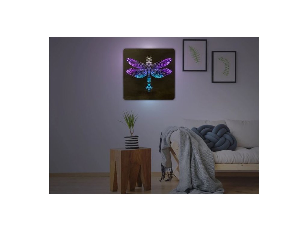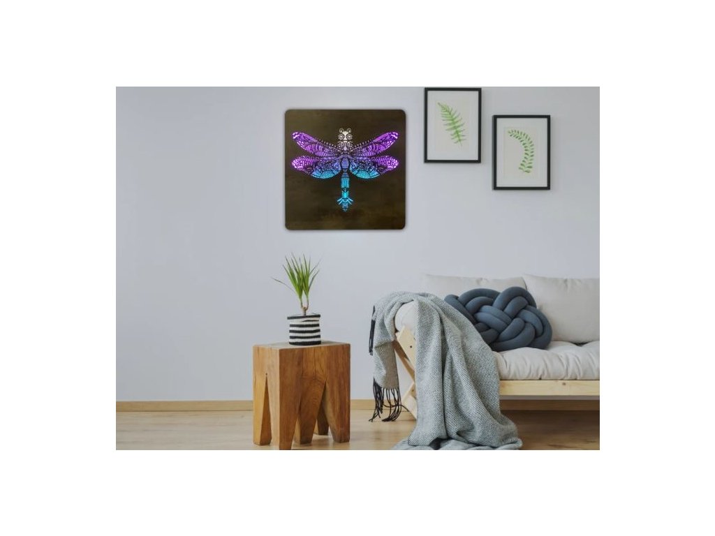 Drevený obraz s LED podsvietením Vážka 62x62 cm RGB