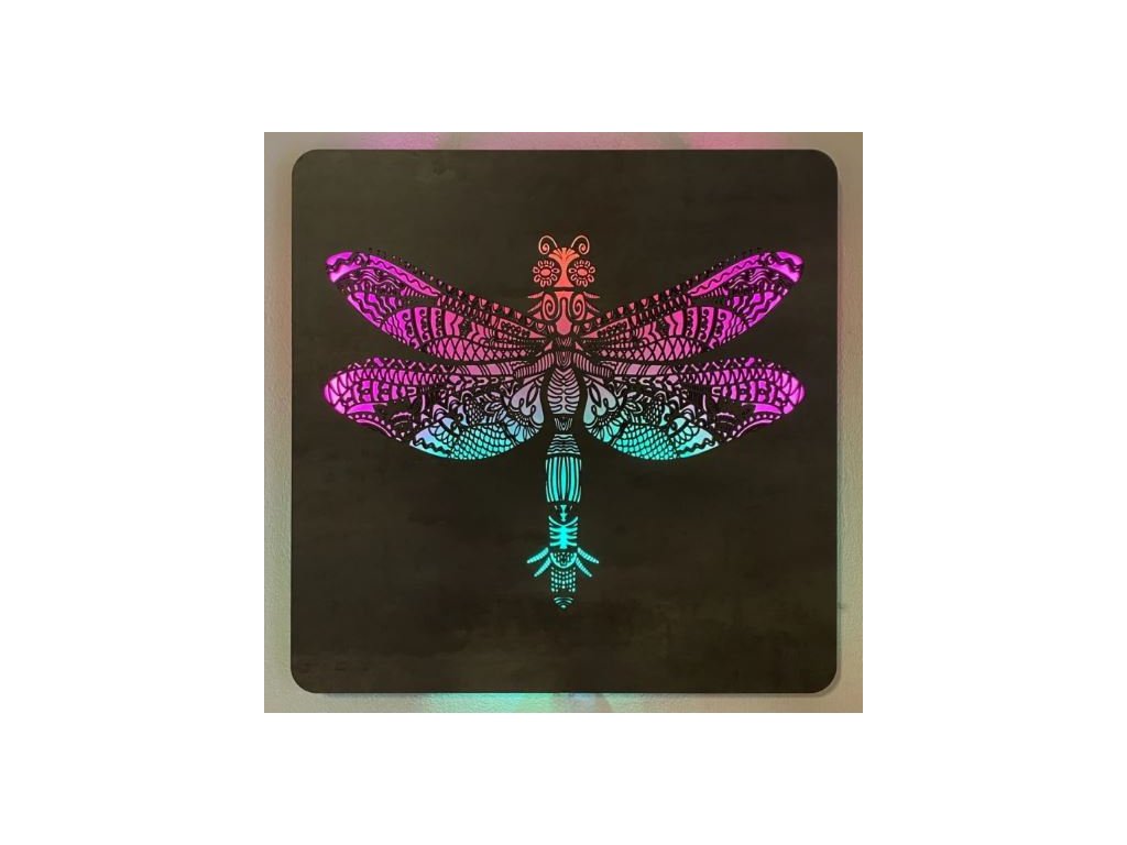 Drevený obraz Vážka s LED podsvietením RGB prináša krehkú krásu v modernom podaní. Tento LED obraz vážka RGB je hravý, svieži a farebný vďaka viacfarebnému RGB podsvieteniu, ktoré si môžeš prispôsobiť podľa nálady.